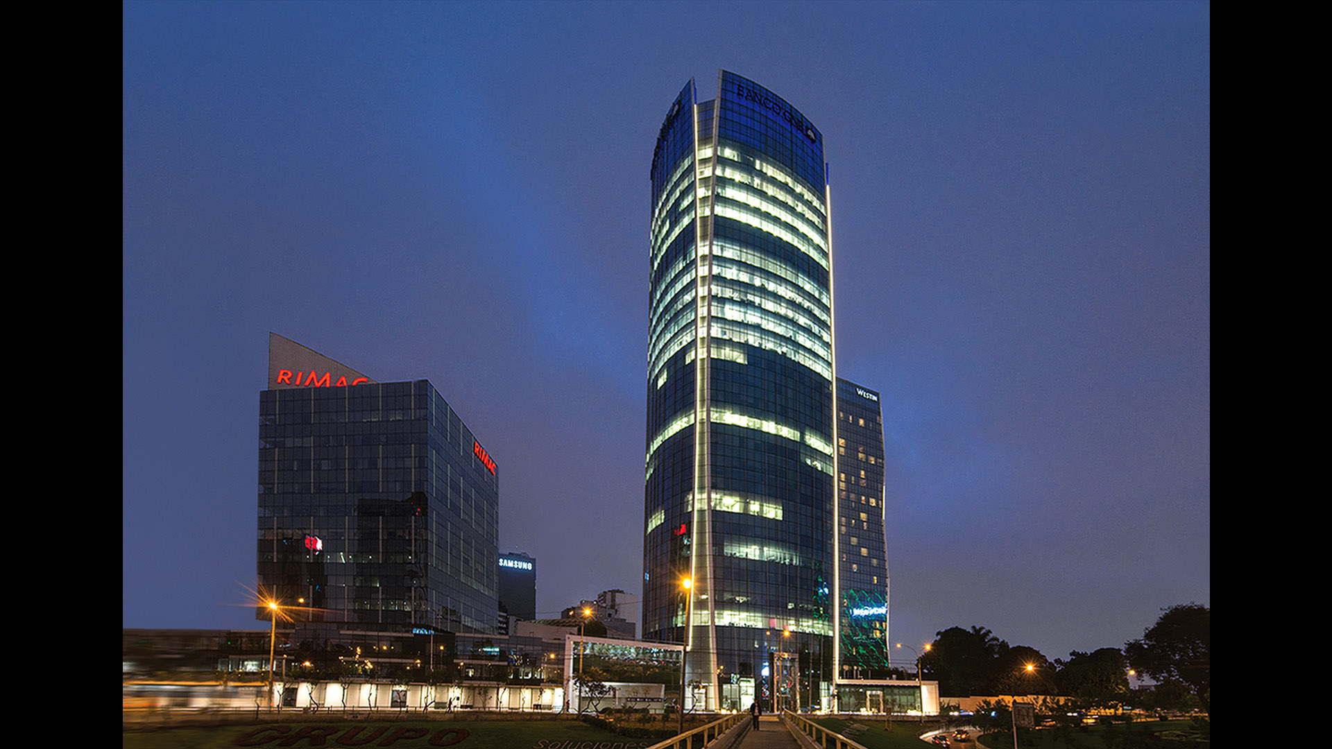 Arquitectonica began to develop a master plan for this new “campus of commerce” in 2009. It will eventually feature a park and seven glass towers, including the Westin Lima Hotel at 30 stories, and the Banco GNB (also known as Torre Begonias) at 26 stories. They face each other across Calle Las Begonias, a central location beside a major new subway station and just off a cloverleaf interchange, where two of the city’s most important expressways — Avenida Paseo de la República and Avenida Javier Prado Este — intersect.