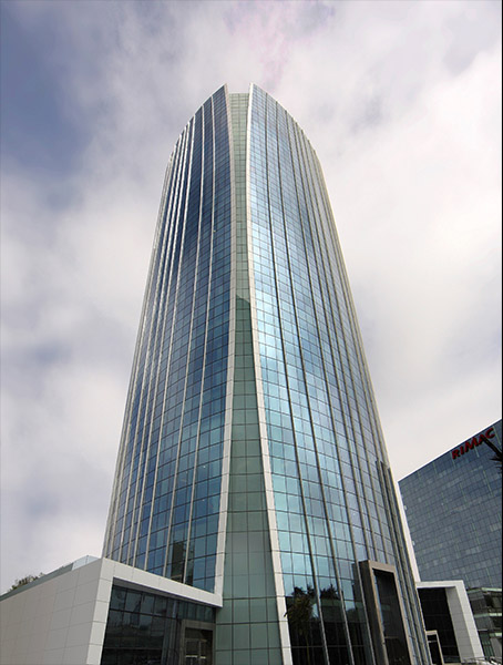 Lima is prone to earthquake activity, so the towers were structured to withstand significant seismic shock. Central cores were made from structural steel plates that extend out and connect to a single row of perimeter columns. This provides maximum resistance to tectonic shifts while also providing an open layout for more flexibility for interior planning. The curtain walls of both towers have 30 percent reflectivity, which helps to save on air conditioning costs. Both are oriented to take full advantage of natural light, while all their artificial lighting is sensor-activated.