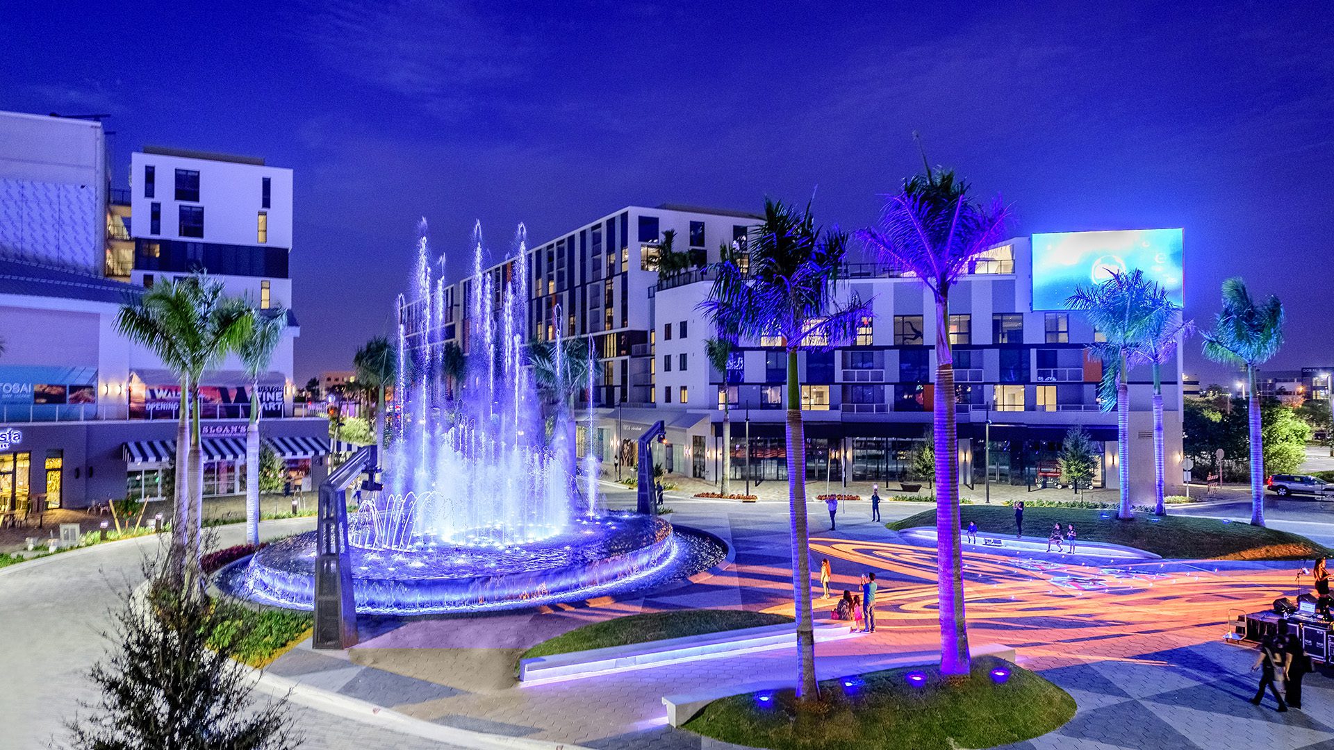 CityPlace Doral is a new 48-acre (19.4-hectare) mixed-use life-style center combining residential and retail/entertainment venues in the heart of existing disconnected office uses. The development services the flanking busy office population in the daytime and offer a variety of leisure options for its own and neighboring residential units in evenings and weekends. Although varied in its offering, the phased development will focus on an assortment of food & beverage and interrelated entertainment options, each with outdoor components. The project provides its own parking as well as share the underutilized off-peak existing office parking inventory. The intent is to begin to capture the current void in the area for local food and entertainment options for office workers during the day and the fast-growing residential population.