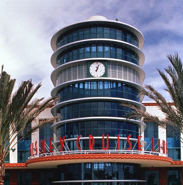 The Port Canaveral Cruise Terminal is designed to service up to two mega-class ocean liners, each containing 2,400 passengers and 900 crew members. The pier-type structure is oriented perpendicular to the water’s edge, allowing for passenger circulation through the length of the building into the ship from the short, rounded end facing the channel. This allows for an extended curb length on both long sides of the facility to accommodate both buses and cars, and a smoother baggage handling operation.