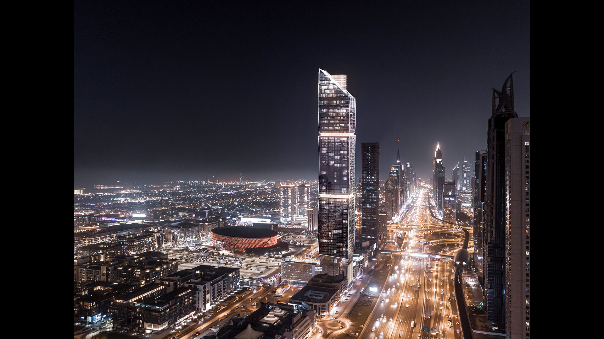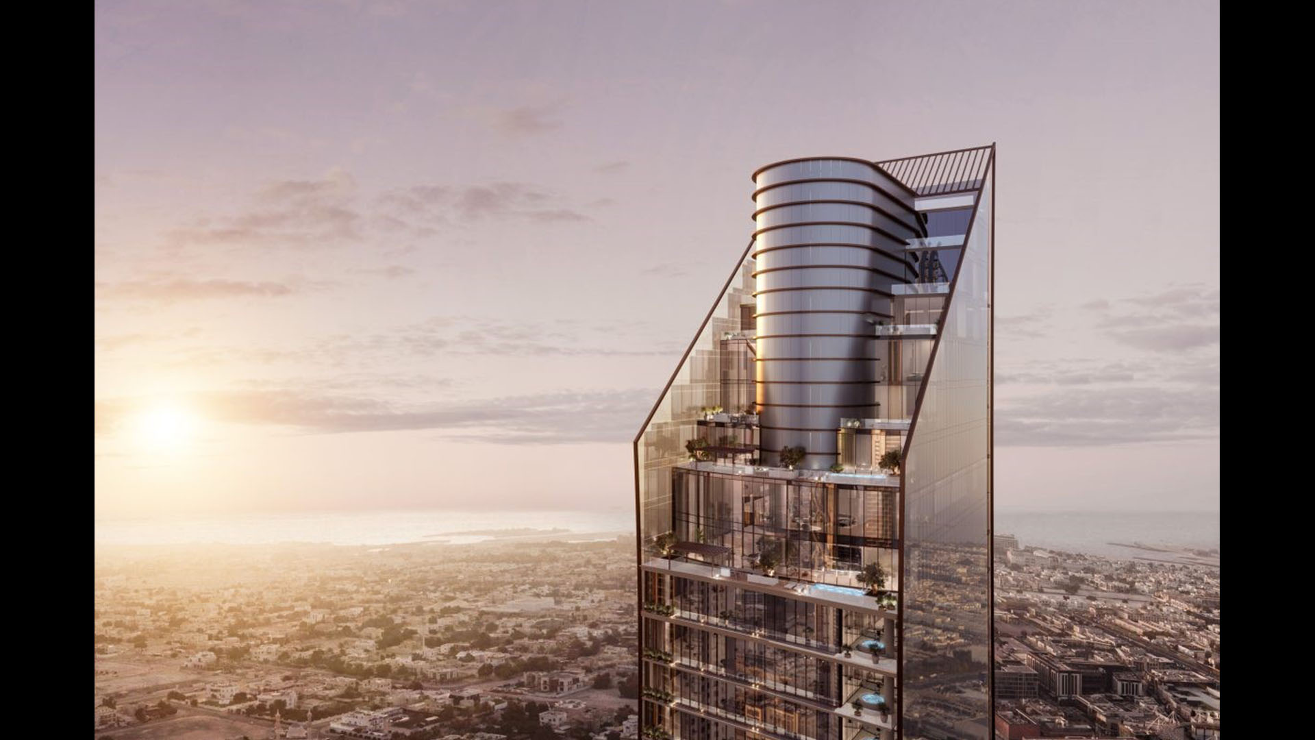 Mr. C Residences Downtown stretches 69 stories towards the sky and is set to become the latest landmark in Dubai’s iconic skyline. Arquitectonica’s design was inspired by transforming a static square into a dynamic facade incorporating curves and asymmetry, allowing the tower to optimize a high percentage of natural light, while each terrace provides each other shade with sweeping views of the city, Burj Khalifa and the Persian Gulf.