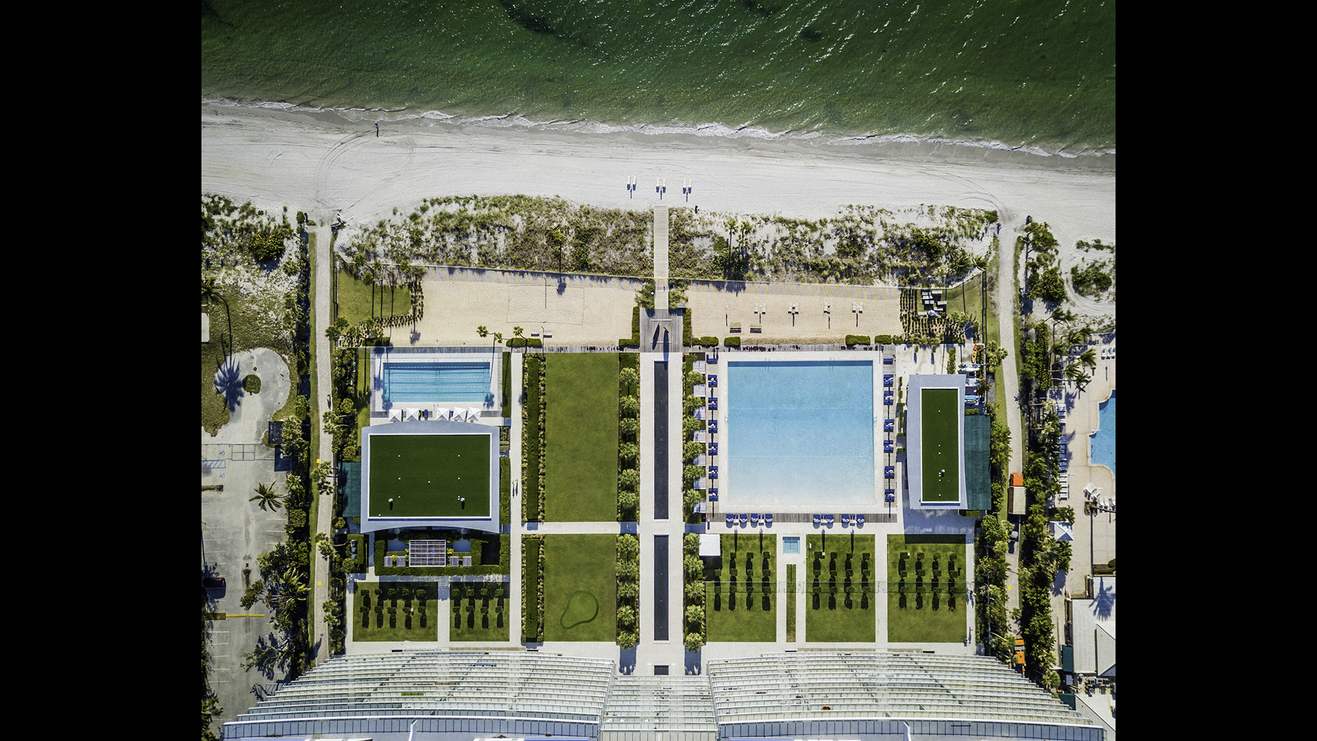 The Oceana is a 775,000 SF luxury residential development with 142 condominiums in a 150’ tower and 12 luxury villas on a ten-acre oceanfront site. The luxury residential development rises 16 stories above the Key Biscayne oceanfront. The development includes several swimming pools, tennis court, and parking garage for 480 cars. The towers are linked by a bridge structure approximately 40 feet in the air. The result is a monumental breezeway that frames the sky and water to the east.