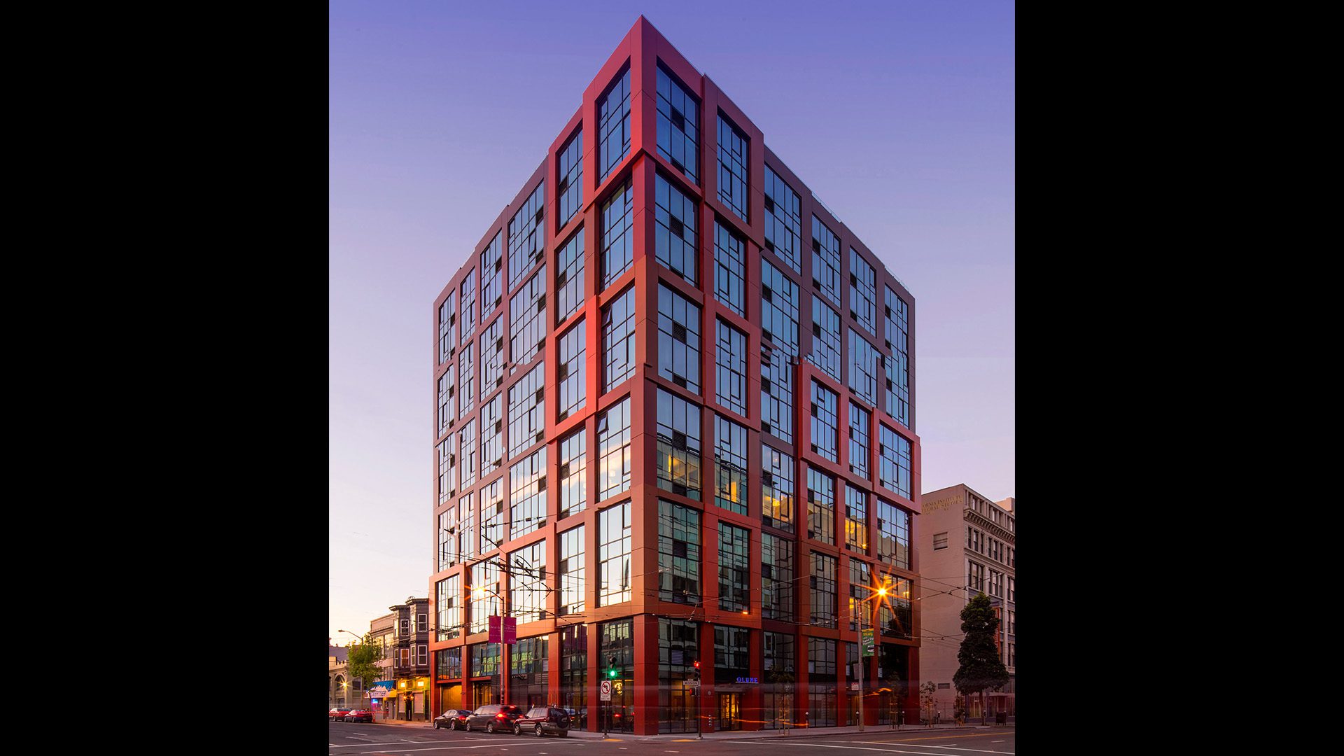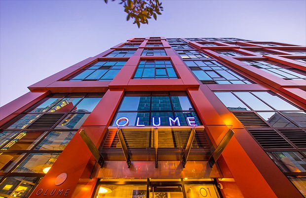 Olume at 1401 Mission Street is a 121-unit development consisting of studio, one-bedroom, and two-bedroom dwellings located above ground floor retail. These units have been designed to maximize access to exterior windows and natural light for all interior spaces with the innovative use of partitions and sidelights. More than 20 of the residential units are for below market rate. On-site facilities include accommodations for over 40 vehicles and over 40 bicycles. The rooftop serves purely as a common space amenity and has a 6,000 SF terrace and solarium/fitness center.