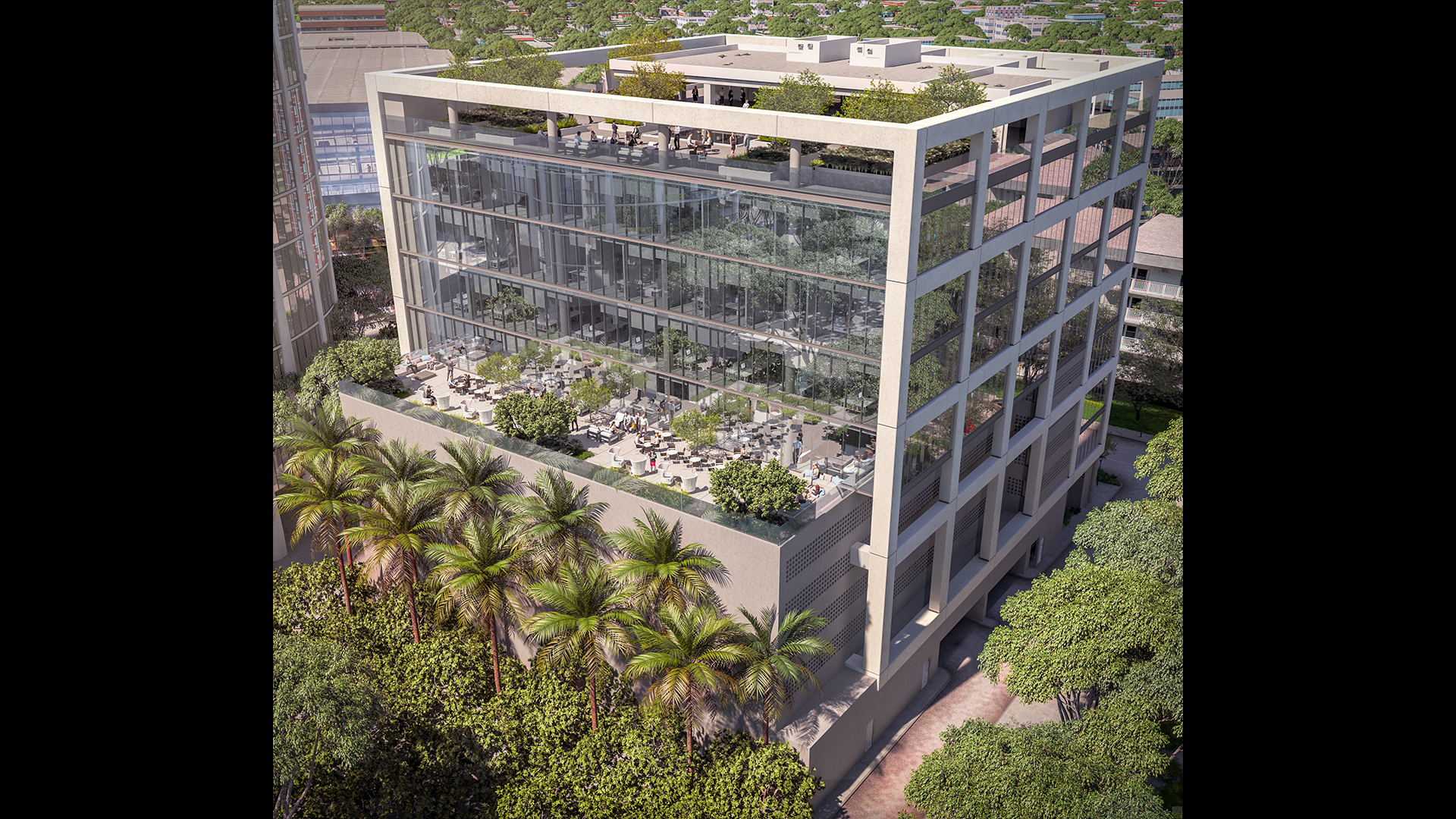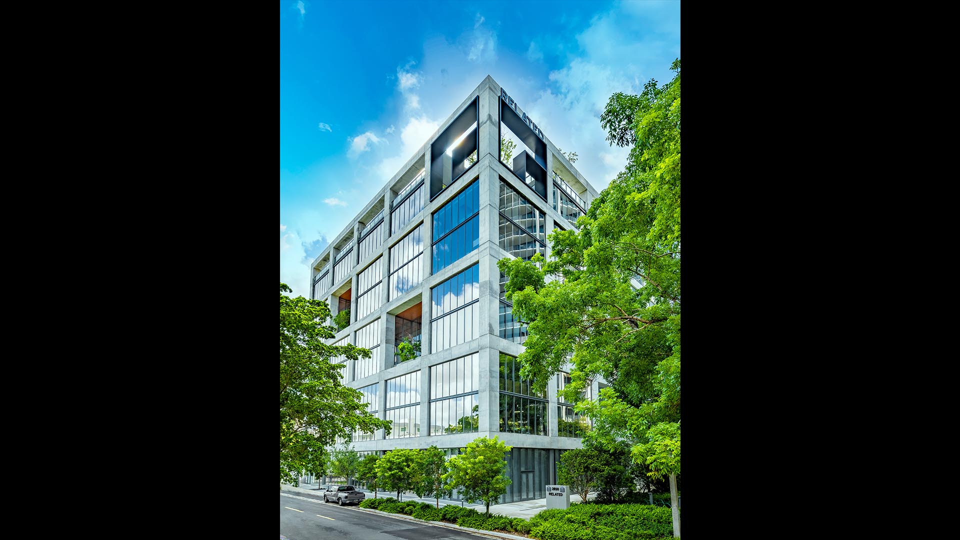 The Related Group Headquarters is an art-filled, multi-terraced 8-story office building on a one-acre site at 2850 Tigertail Avenue in Miami’s Coconut Grove. The new office building totals 105,000 SF (9,760 m2) of office space and 4,000 SF (372 m2) of commercial/restaurant space, plus a parking garage. The Related Group occupies the top two floors and other tenants occupy the other floors.