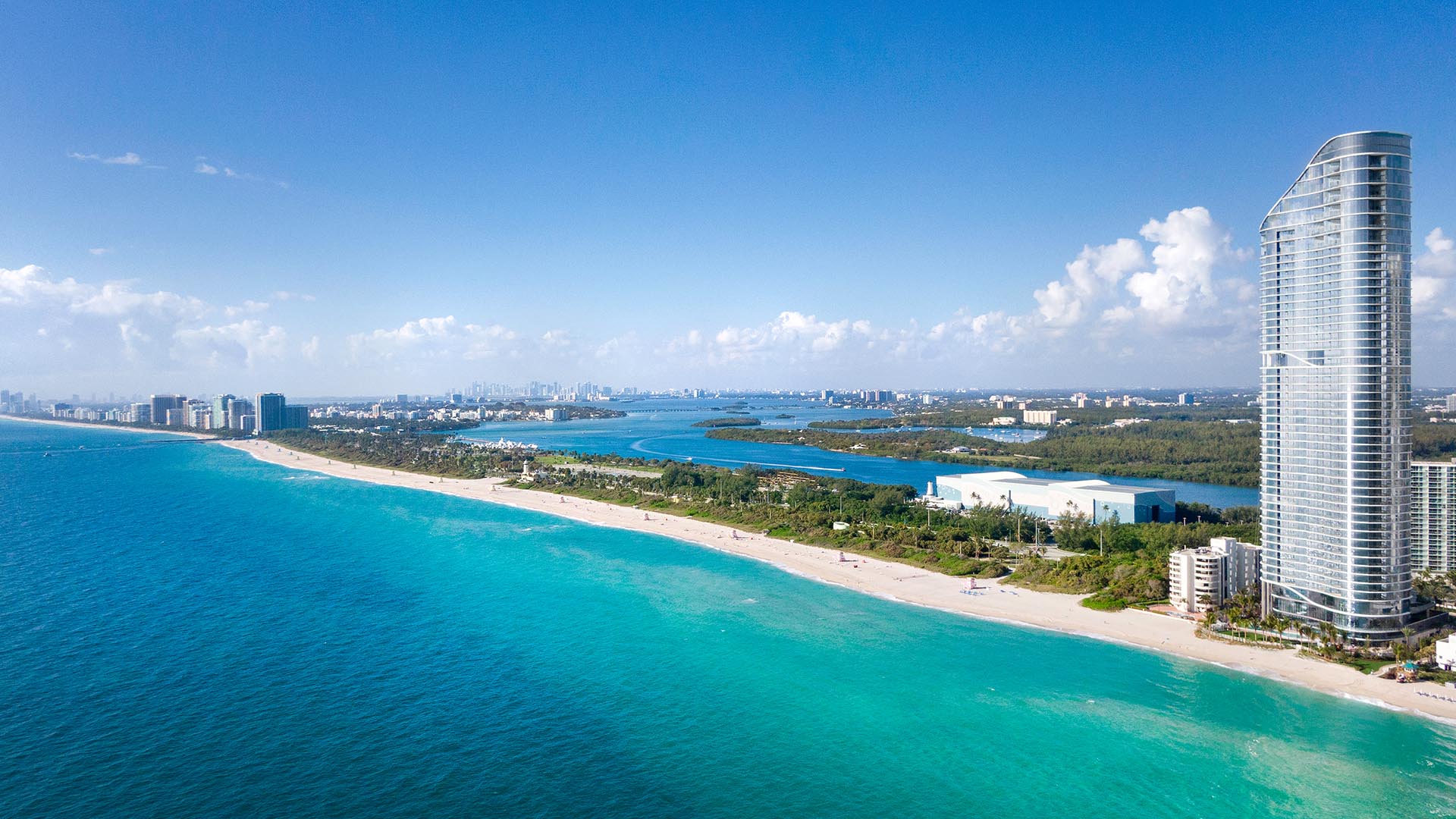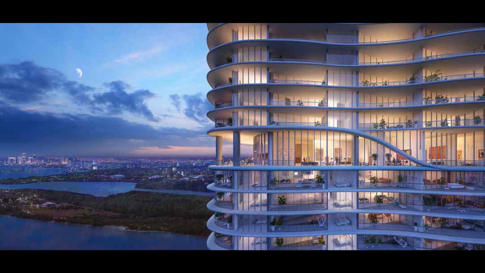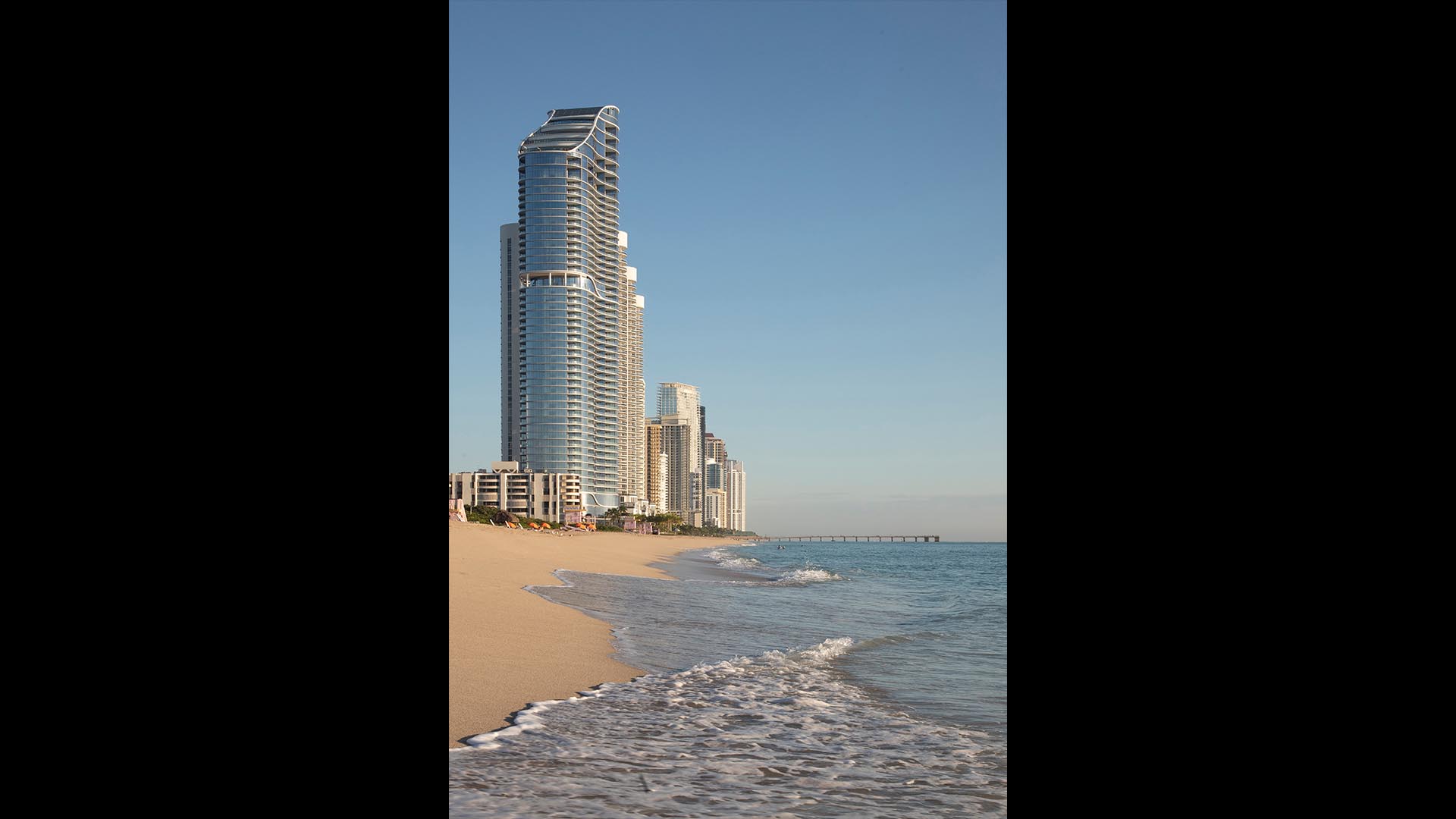 Arquitectonica designed this 800,000 SF luxury high-rise development on a 2.2-acre beachfront site in Sunny Isles. The 50-story tower affords spectacular ocean views for every unit and includes 5 penthouses – one PH per floor – in the top 5 floors. Penthouses range from 7,400 to 14,000 SF each. The development includes 212 units with generous balcony space; spa and fitness center; beach bar & grille; business center with conference room; multiple swimming pools; amenities on the 1st, 4th and 32nd floors; and structured parking for 416 cars.