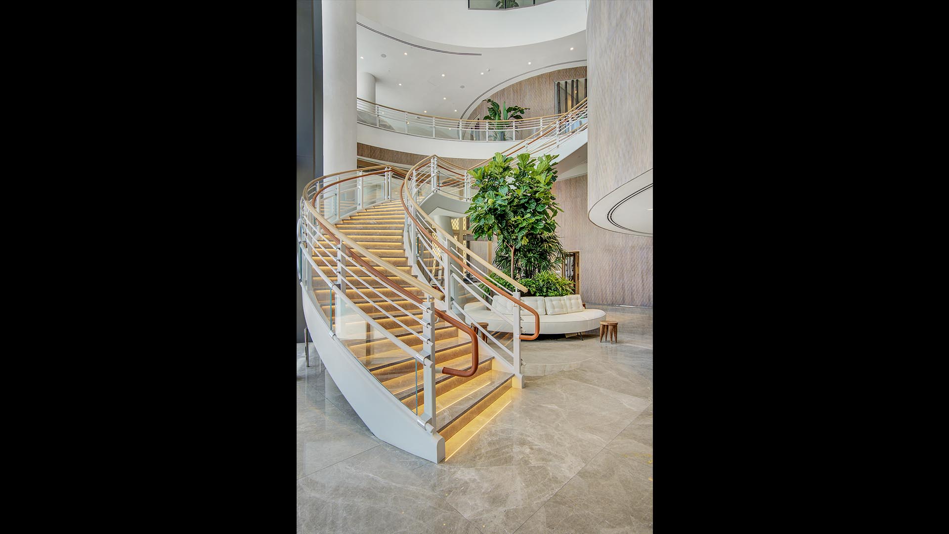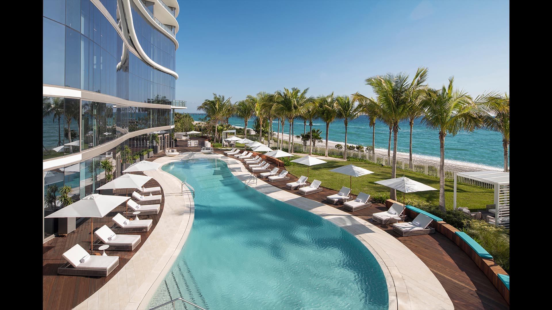 Arquitectonica Interiors designed the luxurious spa, spa suites and fitness center. ArquitectonicaGEO designed the lush landscaping and pool decks.
