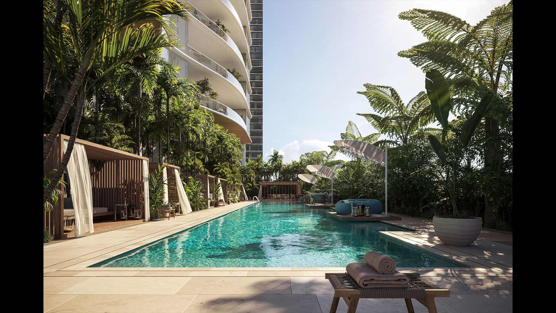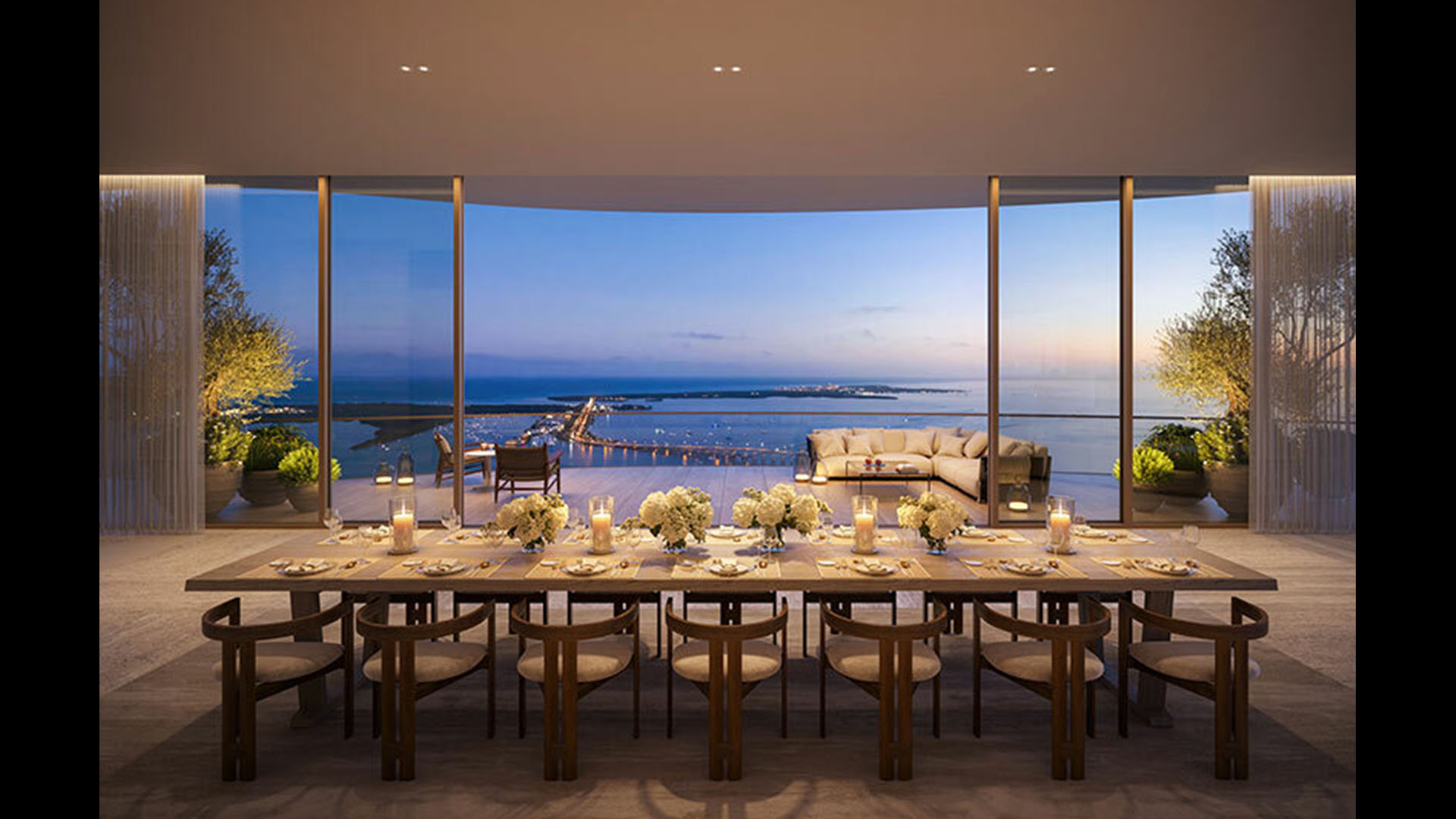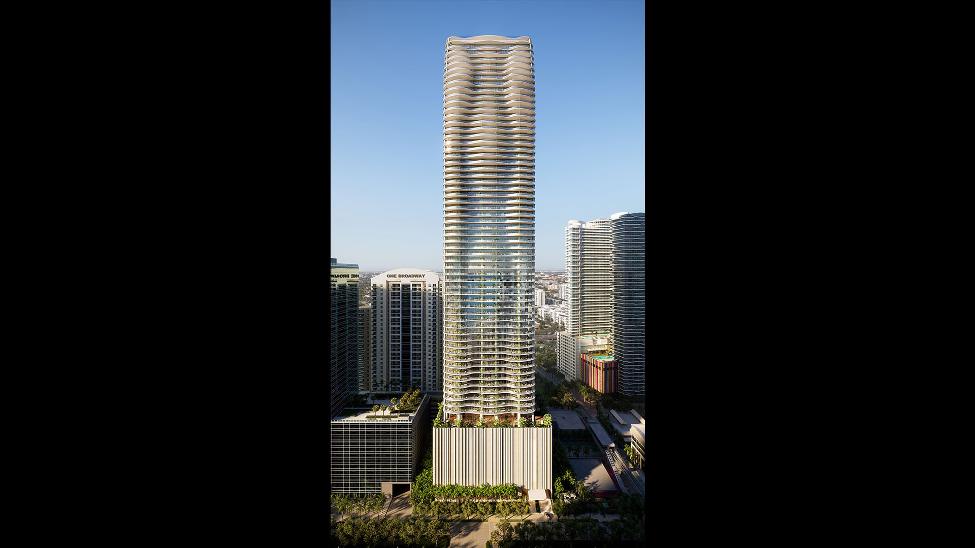 The Residences at 1428 Brickell is 70-story luxury residential tower exhibits a holistic synergy unifying the natural environment with the architecture and the building’s wind-inspired facade, lush landscape and artisan-inspired materials and finishes. 189 residences spanning 1,800 to 4,000 SF (167 to 372 m2), all facing eastward offering captivating Biscayne Bay views through expansive floor-to-ceiling glass. Amenities include an 80,000 SF (7,432 m2) wellness club with tailored amenities for residents’ relaxation and well-being.