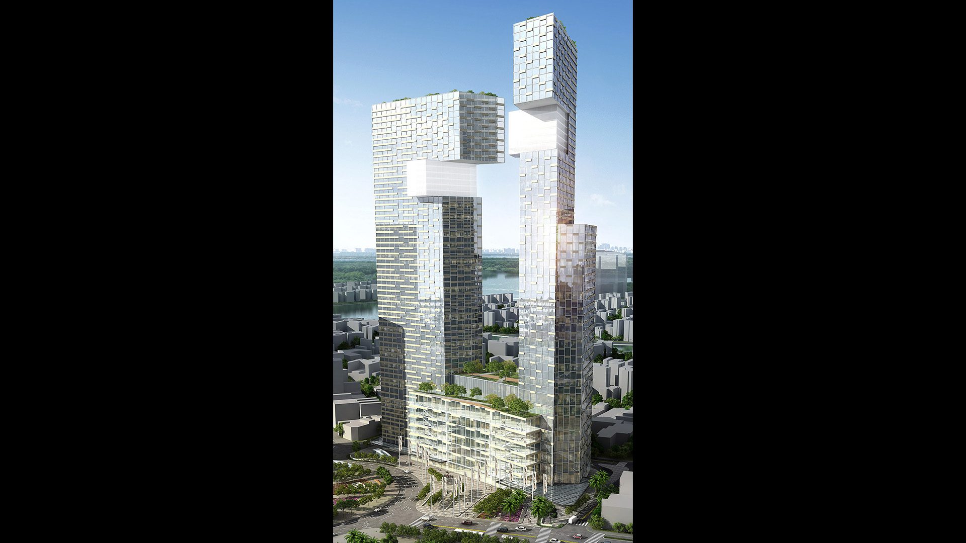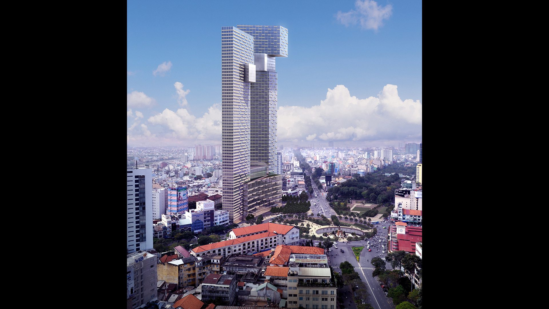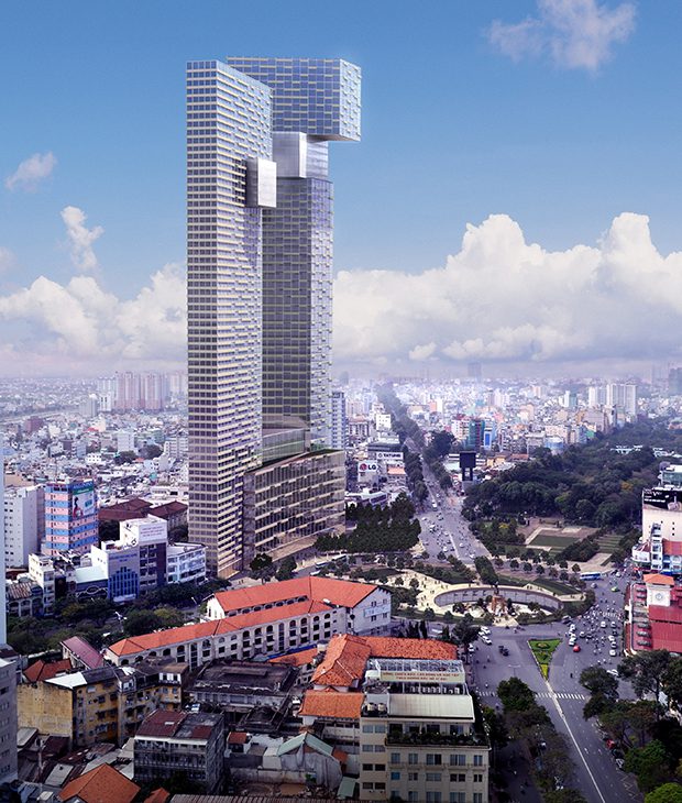 The project comprises a 37,400sqm 250-room Ritz Carlton Hotel; 17,800sqm of Grade-A offices in the 55-storey West Tower, and 58,400sqm luxury apartments with 350 units in the 48-storey East Tower. The One will integrate within the existing urban context and planned infrastructure to provide a signature skyline for the city, and a destination for the people of Ho Chi Minh City. The architectural form reflects the two symbolic dragons of Vietnam rising from the heart of the city.
